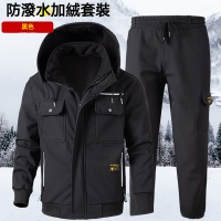 加絨加厚防水工作服男套裝,汽修、建築、秋冬戶外男士耐磨衝鋒衣勞保服!