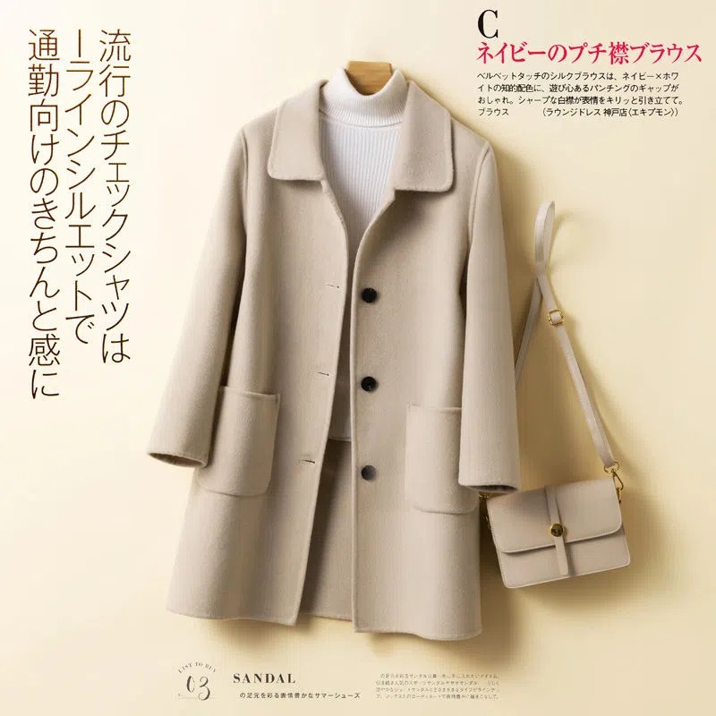進口羊毛中長版大衣 雙面絨質感柔軟親膚 H型剪裁遮胯顯瘦 冬日通勤氣場滿分